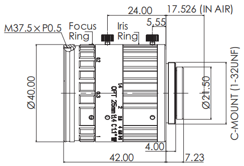 ◆ The sensor format of 10MP fixed focal length lenses OPT-C2514-10M is 2/3″ | 1.1″.